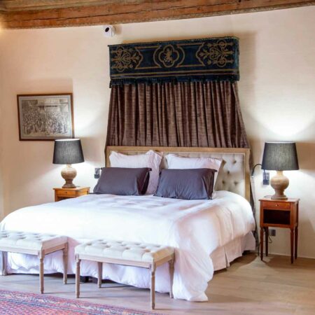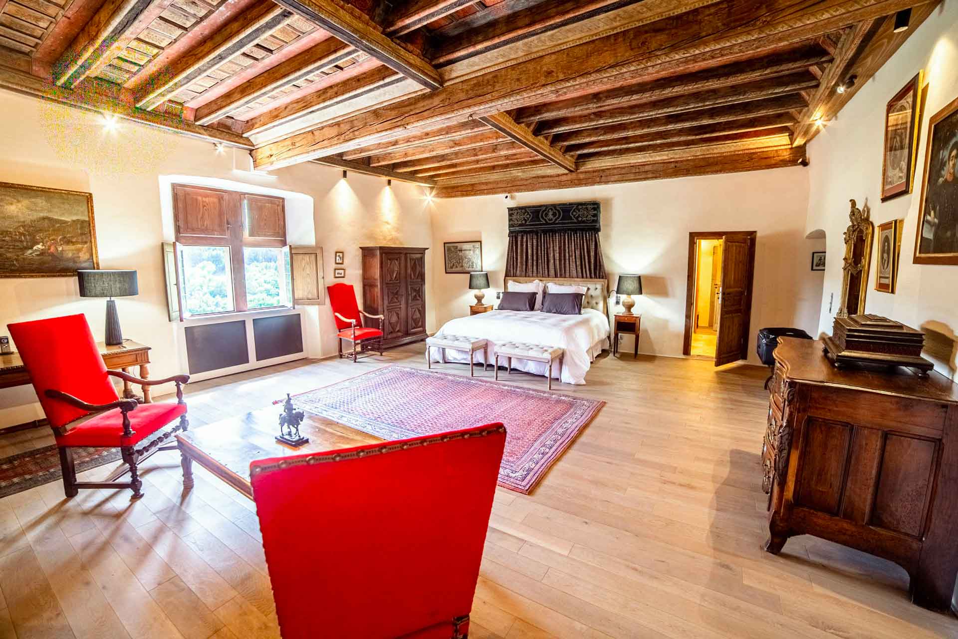 This parental suite of approximately 65 m² will bring you to the time of the Lords thanks to its imposing fireplace and its magnificent painted ceilings from the 16th century. An immersion as close as possible to History in this emblematic site of Haute-Loire.