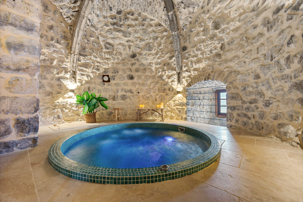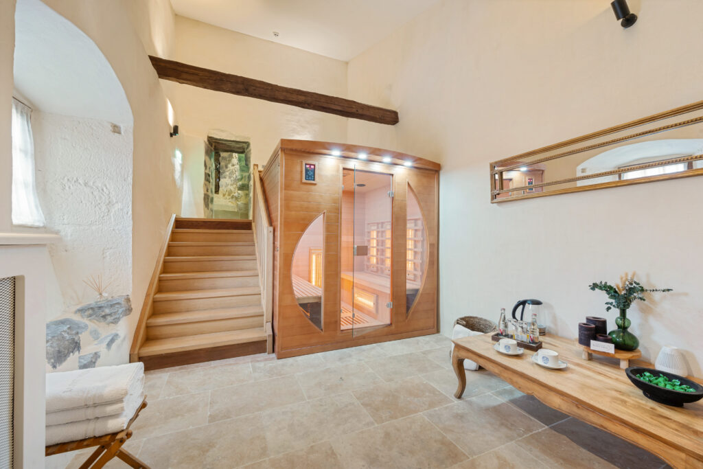 Seul, en couple, en famille ou entre amis, le jacuzzi est le lieu idéal pour vous relaxer. Niché dans une des tours du château, offrez-vous un moment de détente dans cette pièce à l’histoire plus que centenaire.